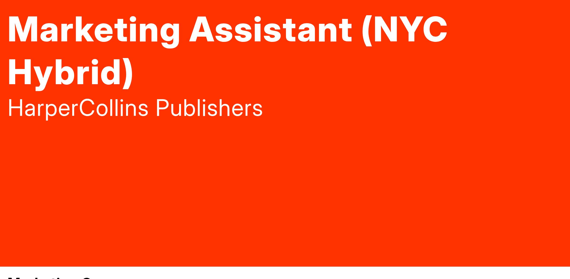 The William Morrow Group, a division of HarperCollins Publishers, is seeking a Marketing Assistant. The Morrow Group is comprised of several imprints – flagship imprint William Morrow, as well as Dey Street Books, Mariner Books, Harvest, and Avon Books – and publishes a range of titles across most publishing categories, from bestselling mysteries and romances to prize-winning literary fiction, cookbooks, politics, and pop culture titles. The Morrow Group’s authors include Tessa Bailey, R.F. Kuang, Lucy Foley, Alex Aster, Rainbow Rowell, Elyse Meyers, Joanna Gaines, Joe Hill, and more.
