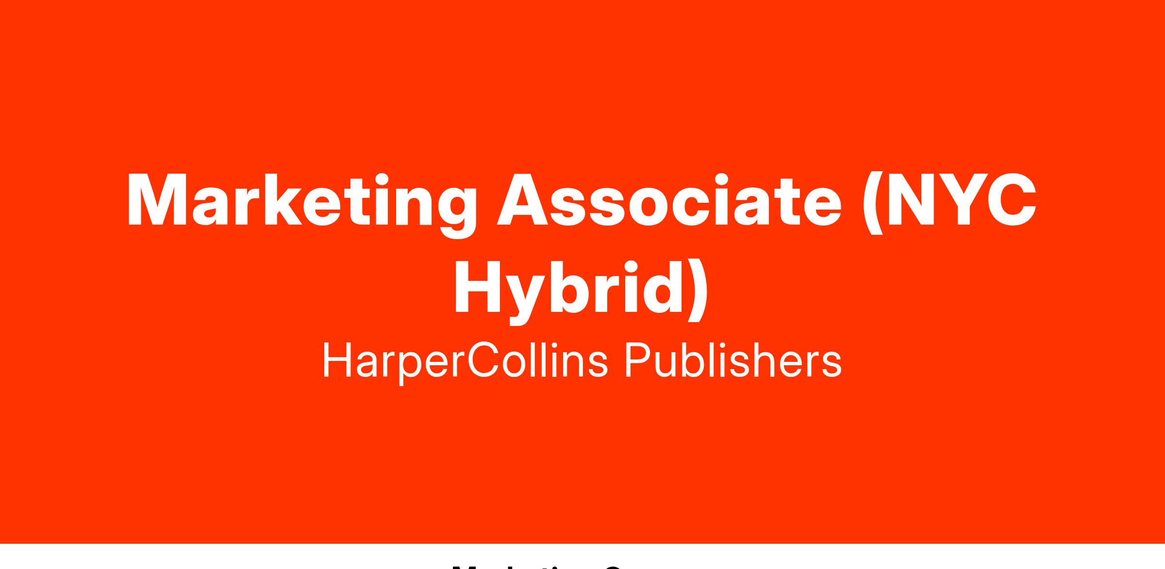 The William Morrow Group, a division of HarperCollins Publishers, is seeking a Marketing Associate. The Morrow Group is comprised of several imprints – flagship imprint William Morrow, as well as Dey Street Books, Mariner Books, Harvest, Harper Voyager, and Avon Books – and publishes a range of titles across most publishing categories, from bestselling mysteries and romances to prize-winning literary fiction, cookbooks, politics, and pop culture titles. The Morrow Group’s authors include Karin Slaughter, Lucy Foley, Tessa Bailey, Cher, Martha Stewart, RuPaul, Ree Drummond, Dave Grohl, Joanna Gaines, and more. In this role you will work on titles across all Morrow imprints, with a special focus on nonfiction categories.