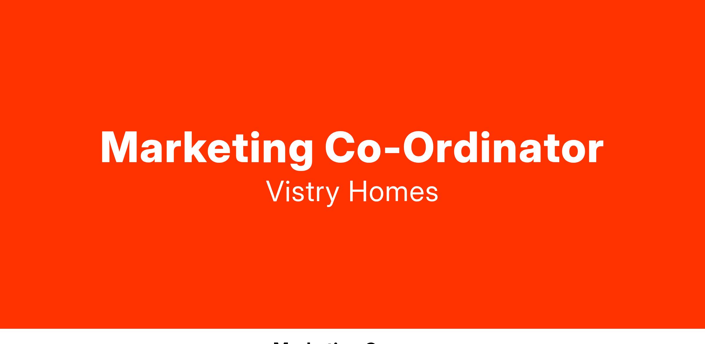 We have a fantastic opportunity for a Marketing Coordinator to join our team within Vistry West London, at our Ealing office and multiple sites across the region. As our Marketing Coordinator, you will be assisting the Marketing Manager to ensure delivery of the Region’s devised marketing programme/strategy in line with Company brand and marketing guidelines, to support the generation of a targeted volume of quality sales leads.