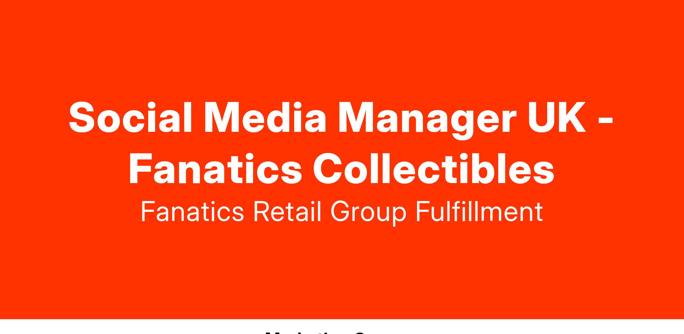DescriptionFanatics Collectibles is looking for a Social Media Manager to be responsible for the management & posting of content daily across Topps’ social media channels (inclusive of TikTok, Facebook, Twitter, Instagram, YouTube, LinkedIn and Twitch) as well as identify new and emerging platforms in which to participate in the UK. This role will also lead all marketing and PR activities across social media.