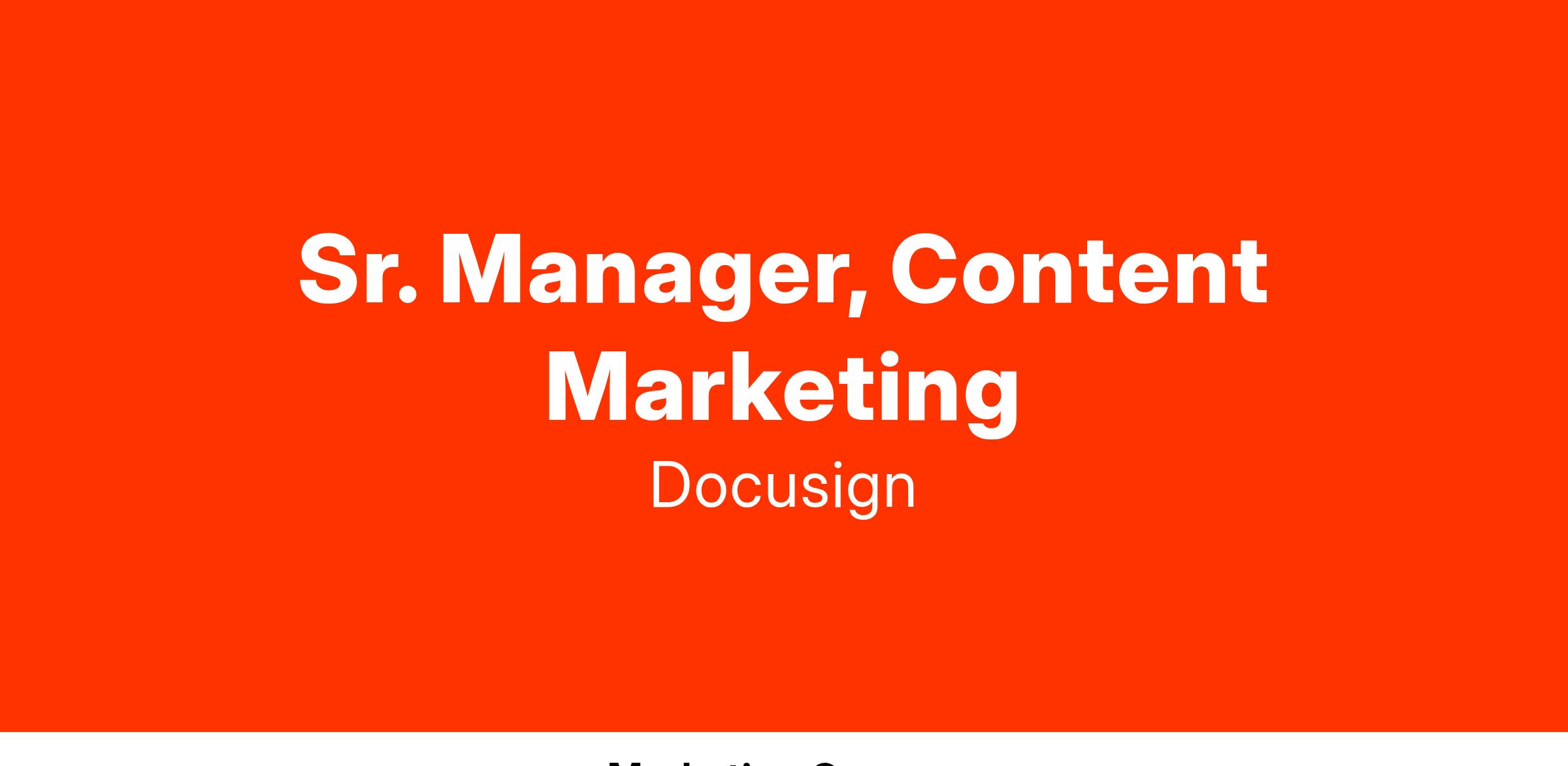 As a Sr. Manager of Content Marketing, you will create multi-format content that aligns with business goals and can be used by various partners across Docusign, including but not limited to Communications, Growth Marketing, Sales and Partner Marketing.