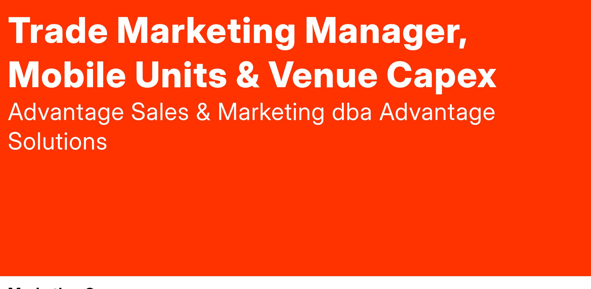 The Trade Marketing Manager covering Mobile Units & Venue Capex is someone with a passion for live experiences. This person will work closely with our Experiential Team and agency partners to ensure events and venues across the country are showing up with the right brands. This person is organized, communicative, creative and enjoys collaboration.